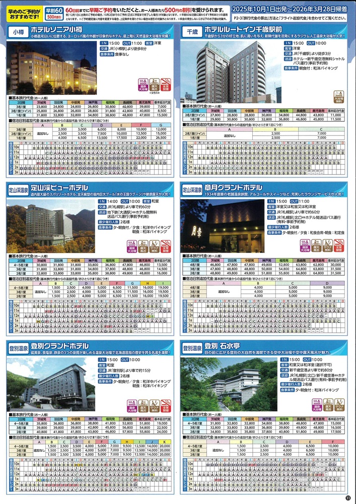 札幌市内はもちろん、小樽・千歳・登別温泉・洞爺湖温泉・旭川など
